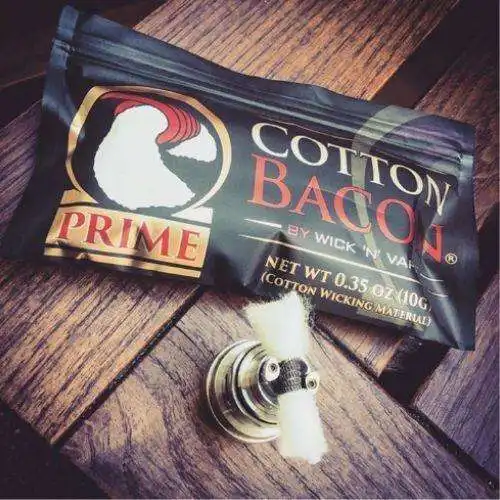 Cotton Bacon Prime é um algodão próprio para construção de coils de RTA (Atomizadores reconstruíveis), alta absorção, pacote de 10 gramas com 10 tiras, fácil de soltar e manusear.