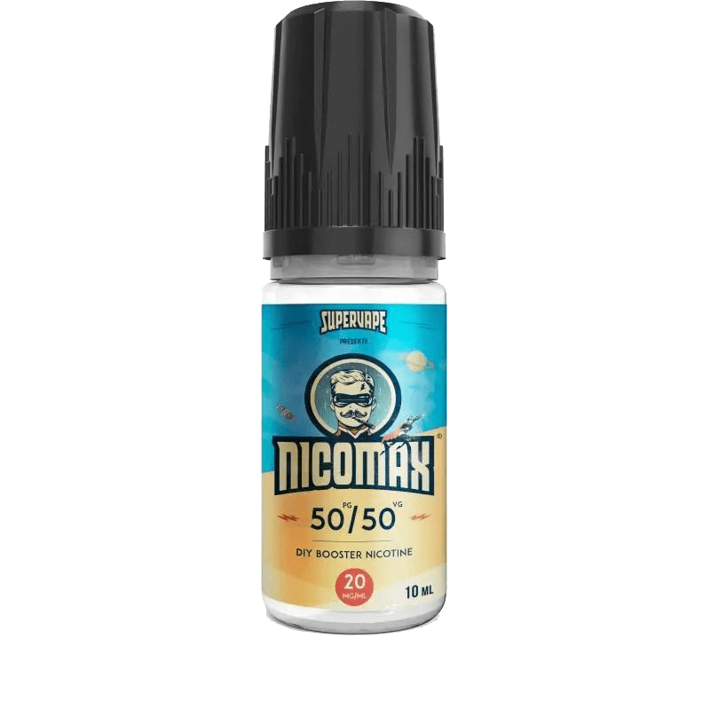 Nicotina para diluir nos teus líquidos, Nicomax da marca Supervape tem uma concentração de 20mg, frascos de 10ml e um rácio de 50pg/50vg